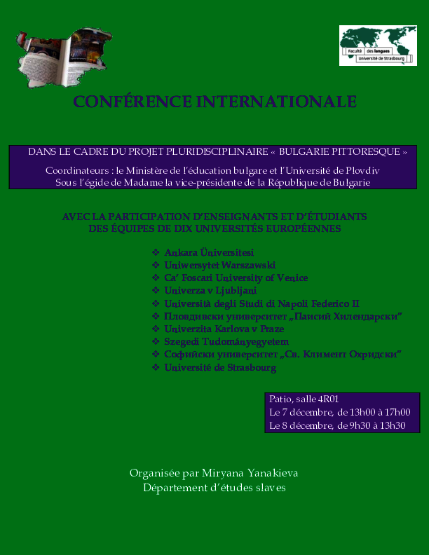 Conférence internationale : Bulgarie pittoresque - dialogues interdisciplinaires dans le contexte étranger